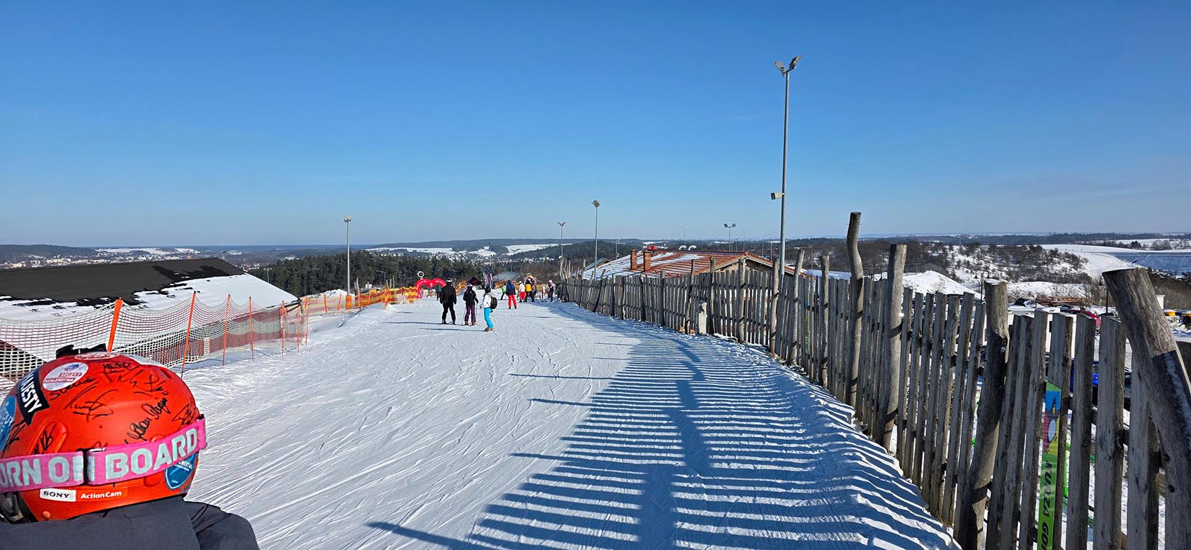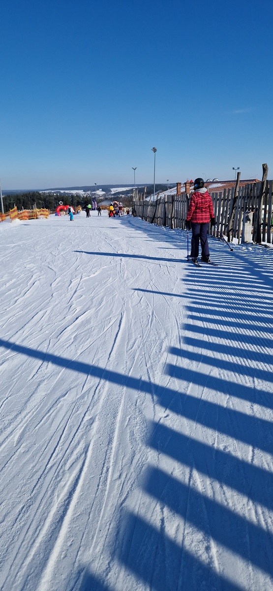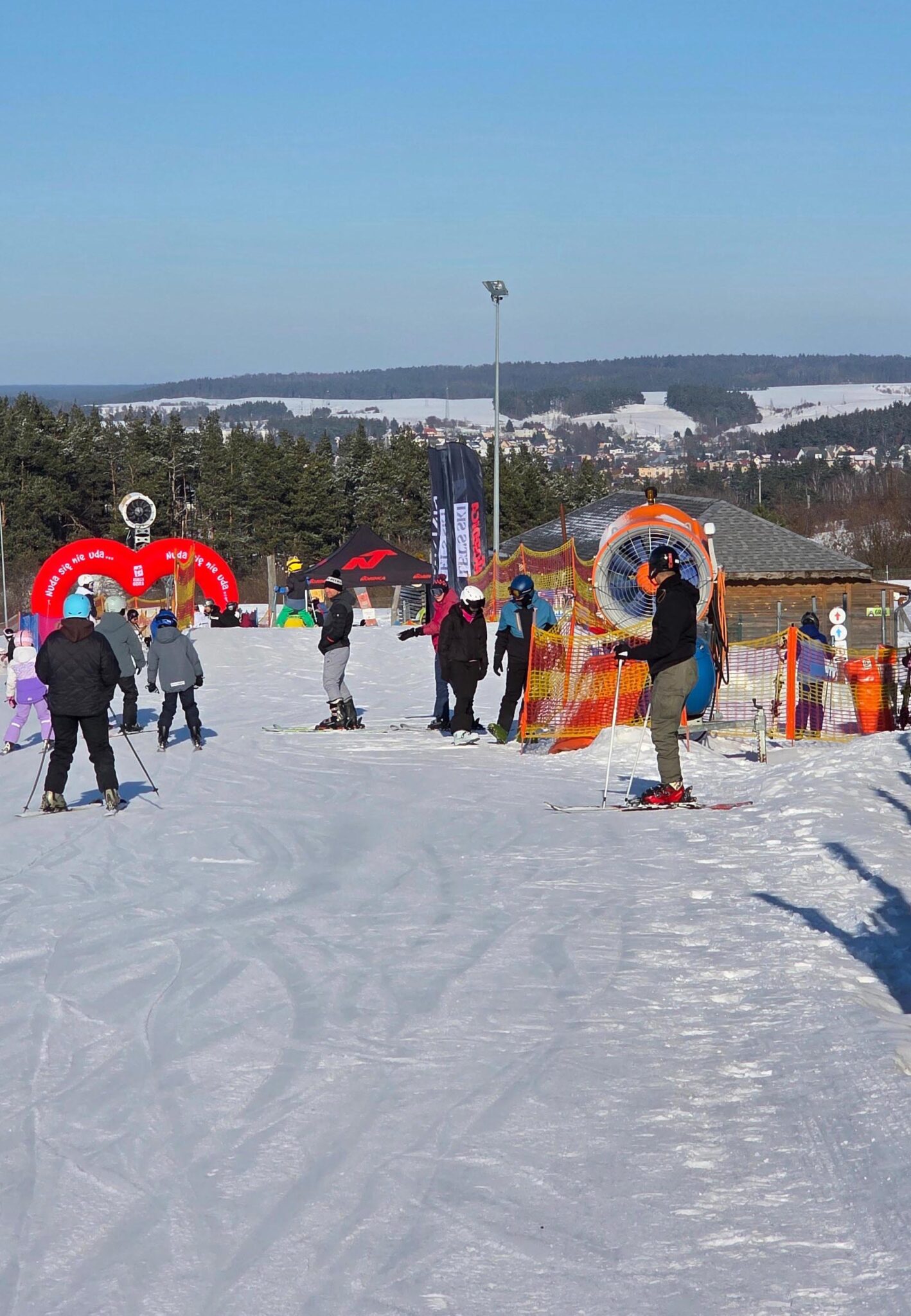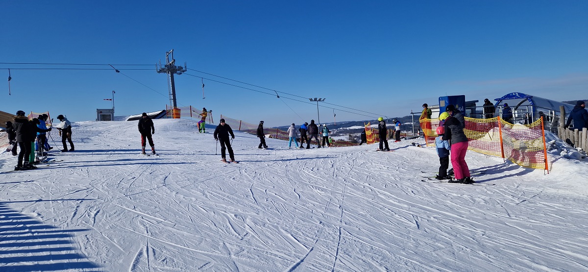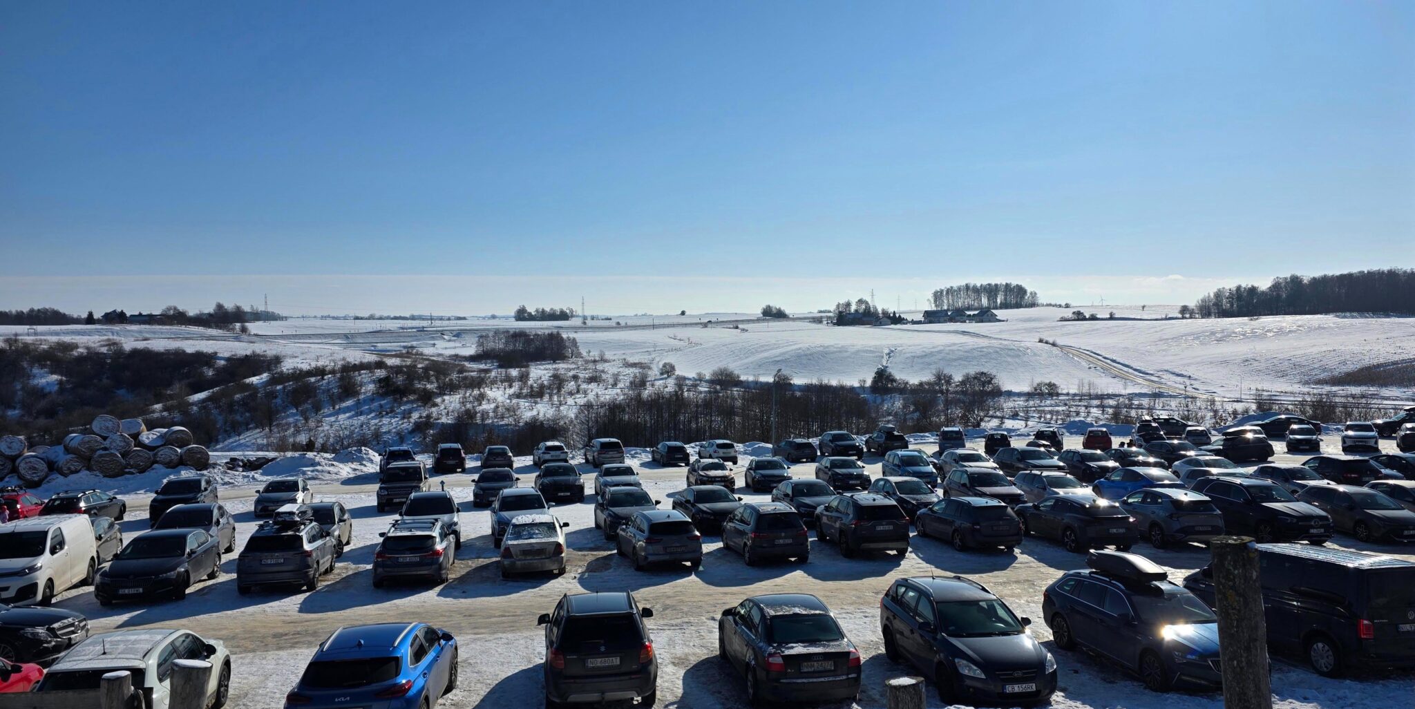 Dojechałyśmy idealnie na czas i całe szczęście – złapałyśmy jedno z ostatnich wolnych miejsc na górnym parkingu. Ruch naprawdę spory, co pokazuje, że nawet niewielka górka z trzema trasami może przyciągnąć tłumy, jeśli infrastruktura i przygotowanie stoków są na poziomie.