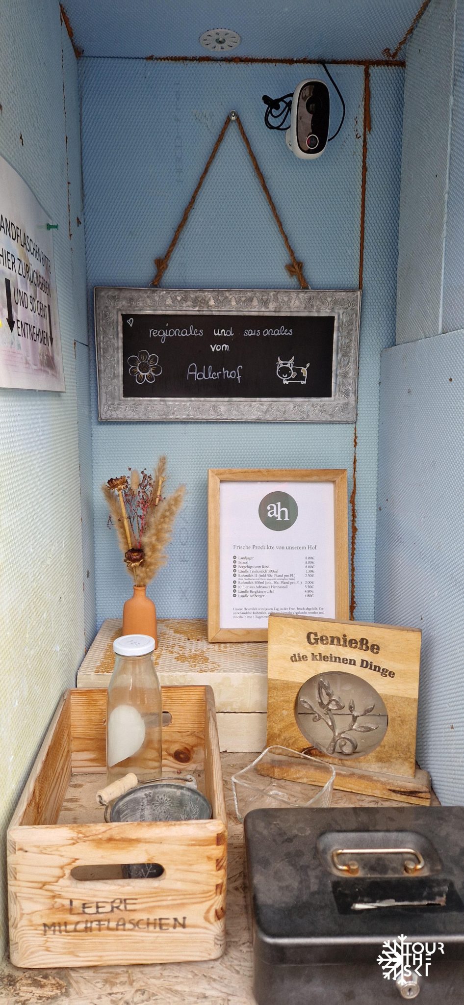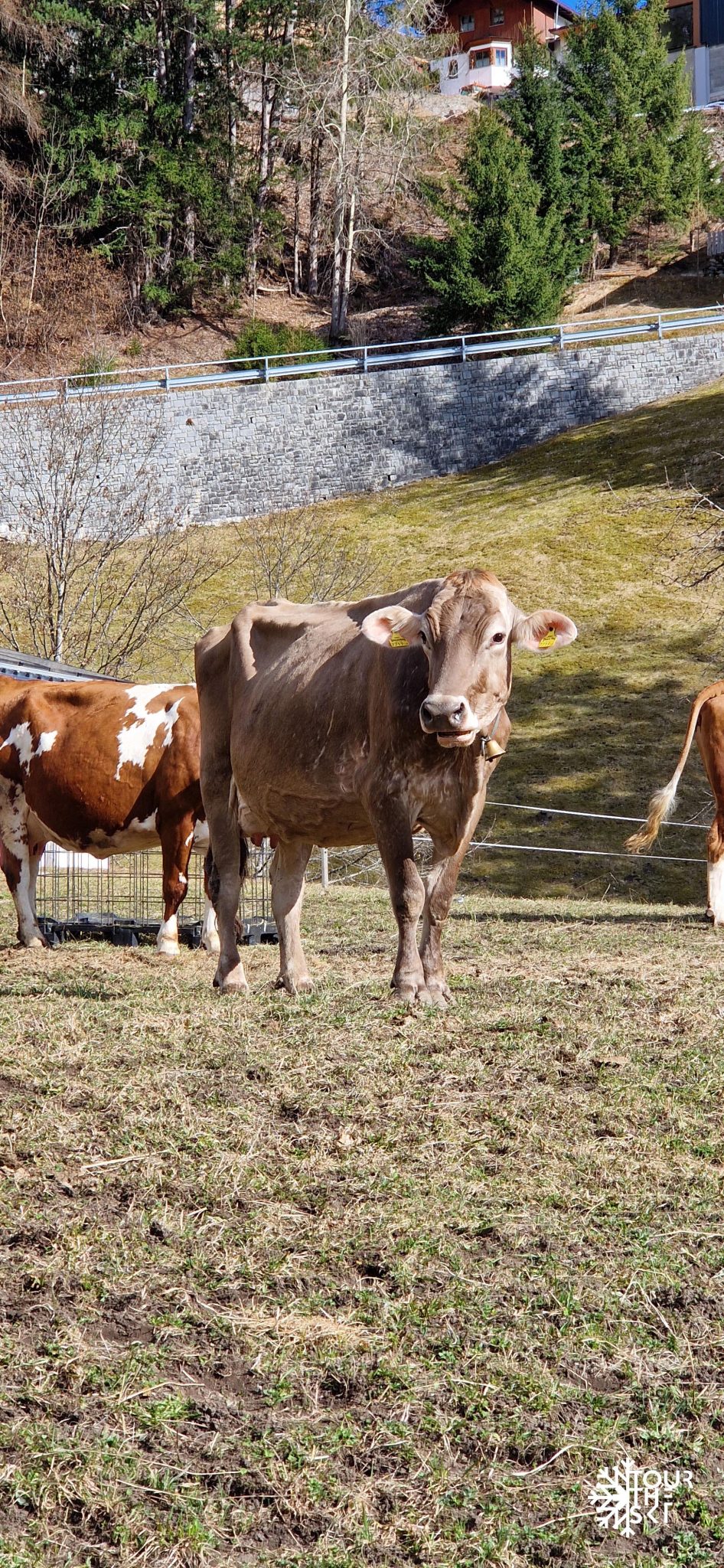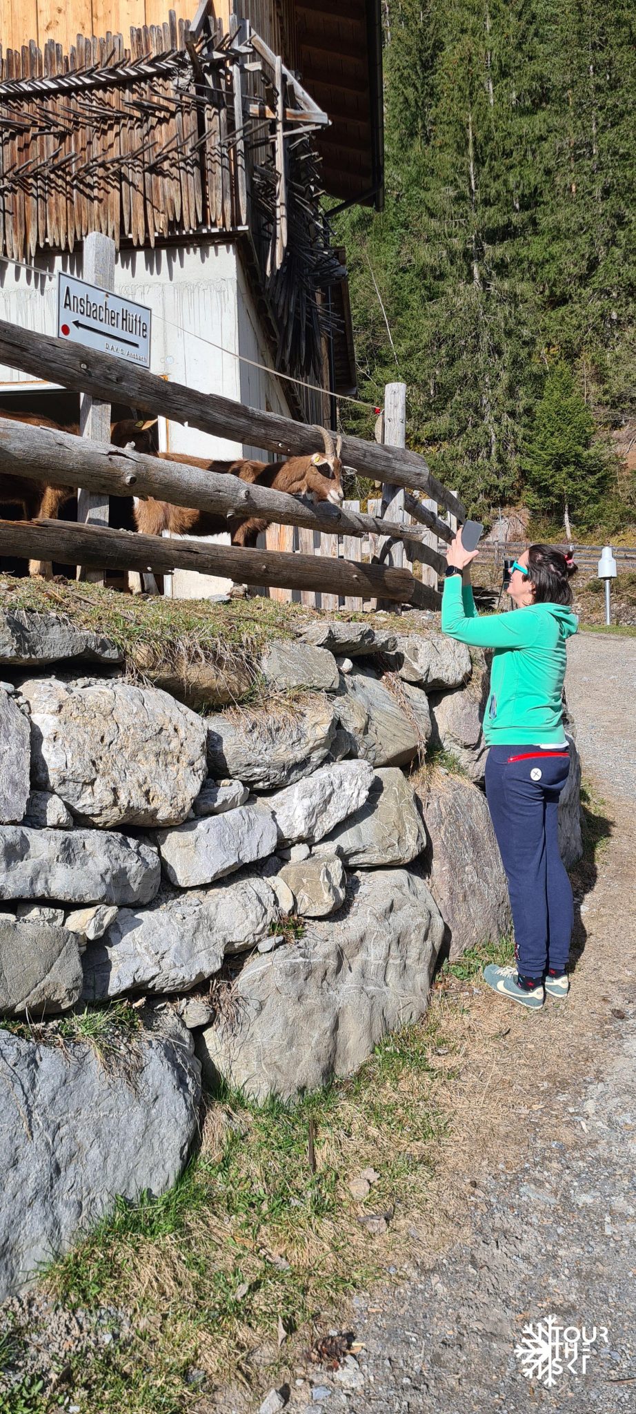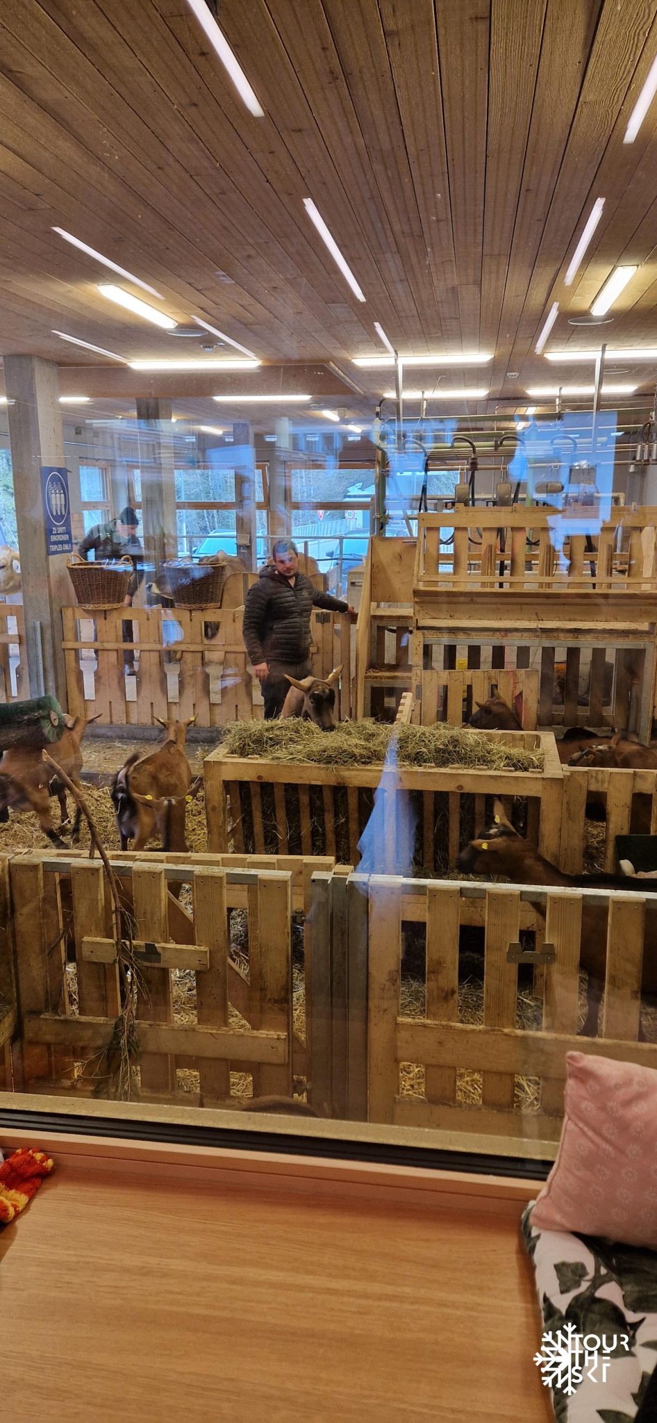 W samym miasteczku jest sporo knajpek, trochę sklepów, jest też obora w centrum, przy której jest kawiarnia z przezroczystą podłogą, dzięki czemu można podglądać dojrzewające poniżej sery :) W kawiarence można kupić oczywiście lokalne wyroby mleczne, ale i miejscowe wina oraz inne bajery :) W samej oborze królują krowy rasy szara alpejska oraz przeurocze kozy :)