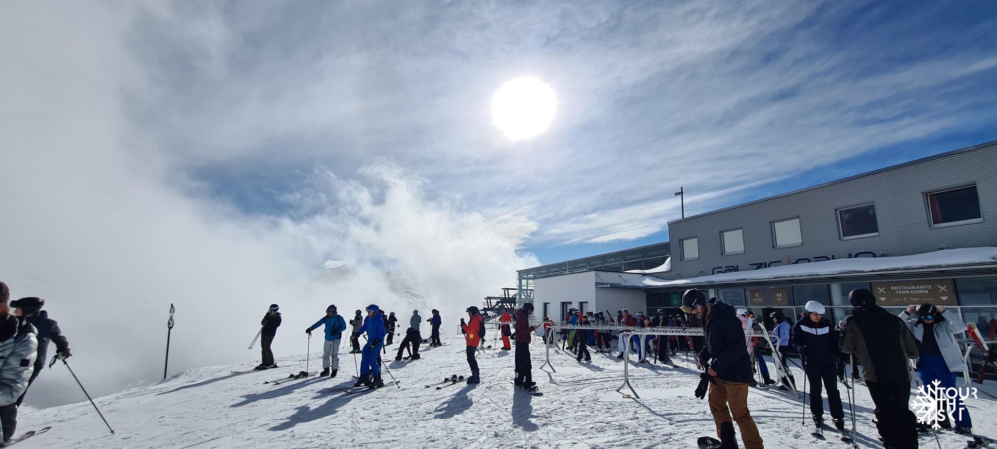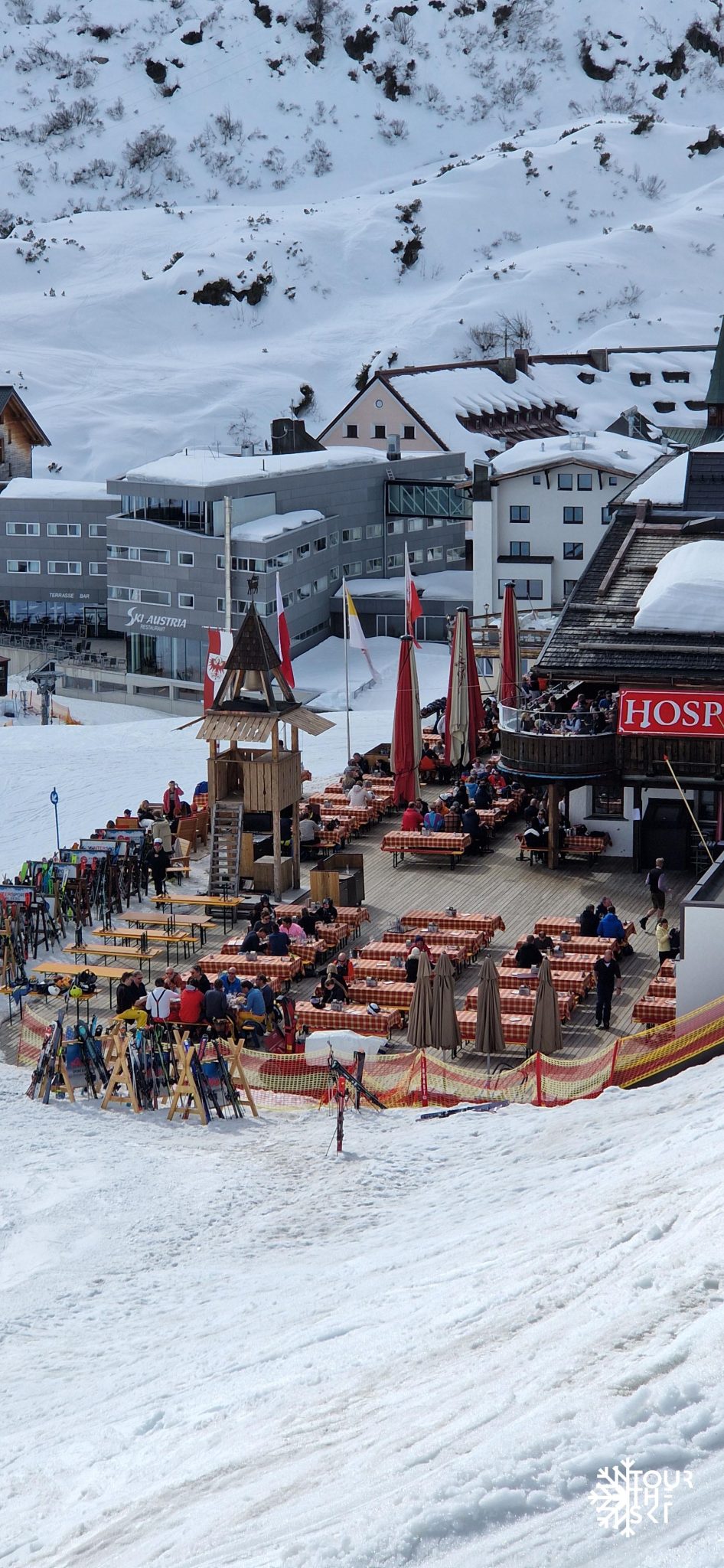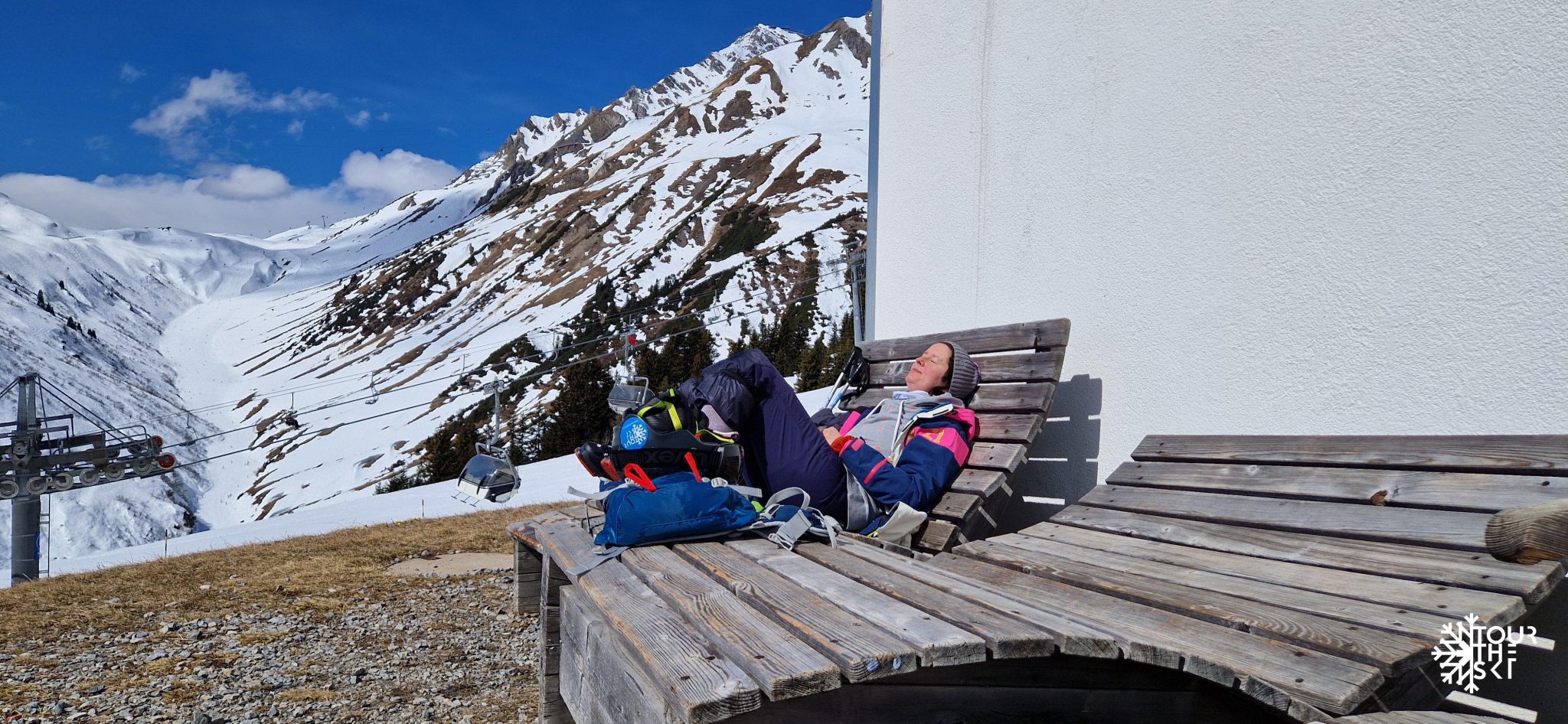 St. Christof to nasza wisienka na torcie. Mikrusek po prostu wśród okolicznych ośrodków. Z Galzig zjeżdżamy jedną trasą do St. Christof i to w zasadzie koniec :) Mało ludzi zapędza się w ten kącik, więc jest przyjemnie i dość kameralnie, a na końcu czeka wystawiona na słońce knajpka i zasłużony pszeniczniaczek pod koniec dnia ;) Można tu odpocząć i zrelaksować się na leżaczku, w promieniach zachodzącego słońca :) Mega miejscówka osłonięta od wiatru - więc w słoneczny dzionek to idealny adres dla amatorów zimowego opalania.